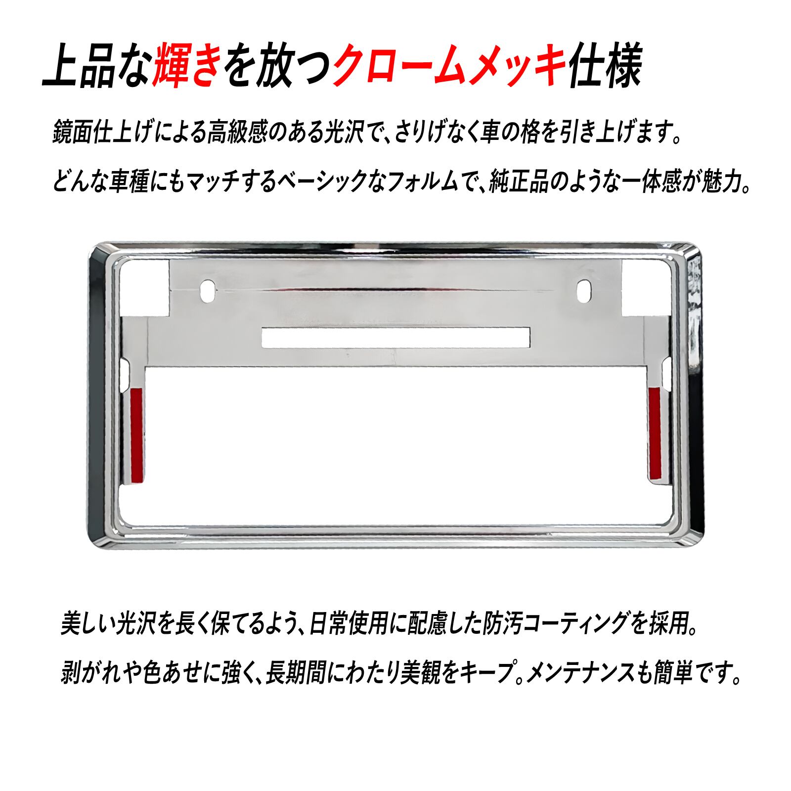 シンプルながら存在感抜群。ナンバープレートまわりを一気にドレスアップし、愛車の印象をグレードアップします。