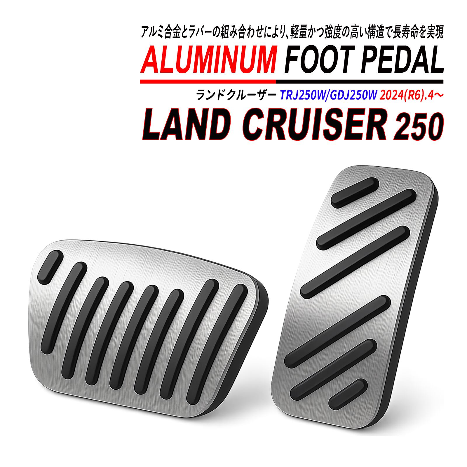 ランドクルーザー 250 アルミ ペダルカバー 滑り止め付 AT車 ブレーキ アクセル シルバー ブラック 純正交換 ドレスアップ