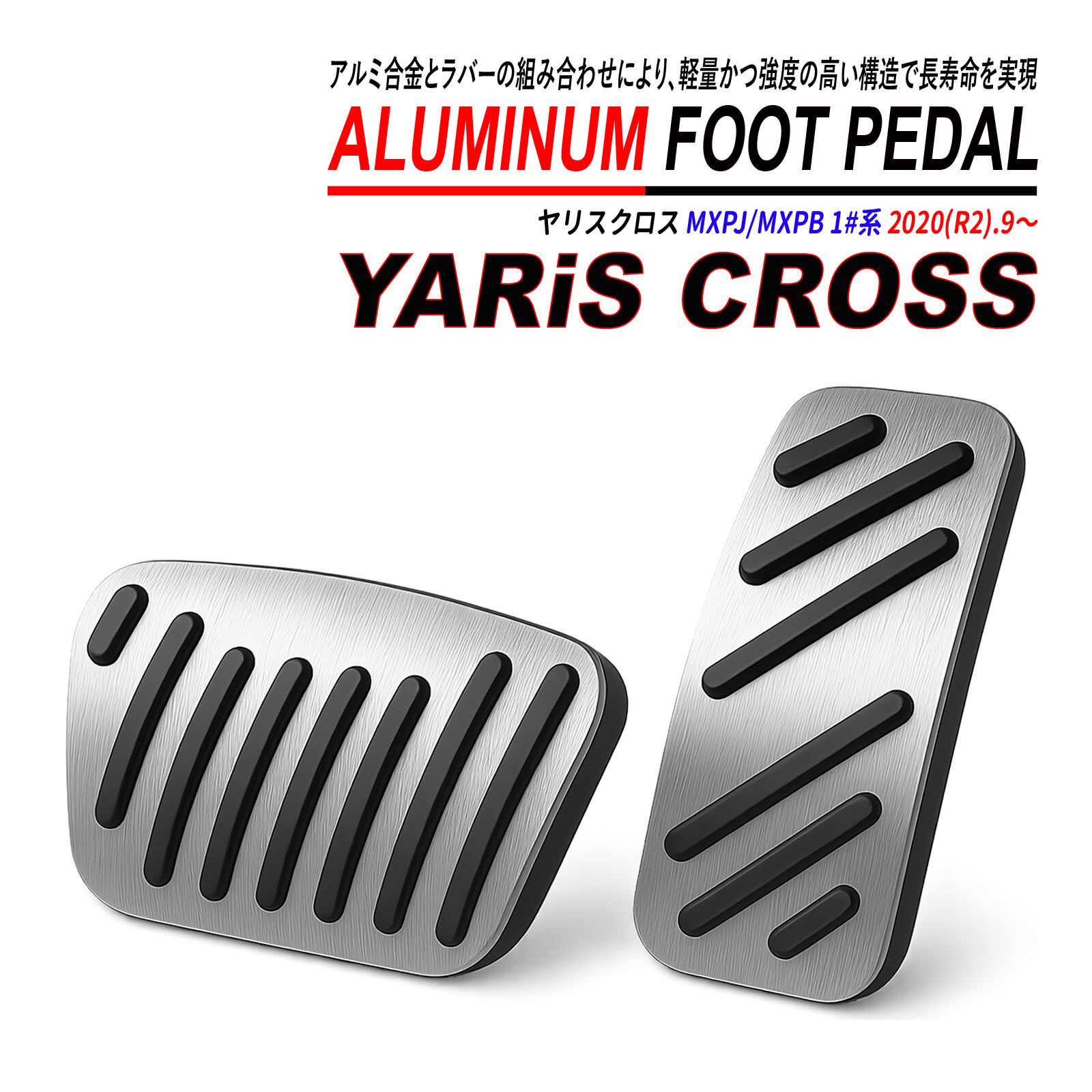ヤリスクロス MXPJ / MXPB 1#系 アルミ ペダルカバー 滑り止め付 AT車 ブレーキ アクセル シルバー ブラック 純正交換 ドレスアップ
