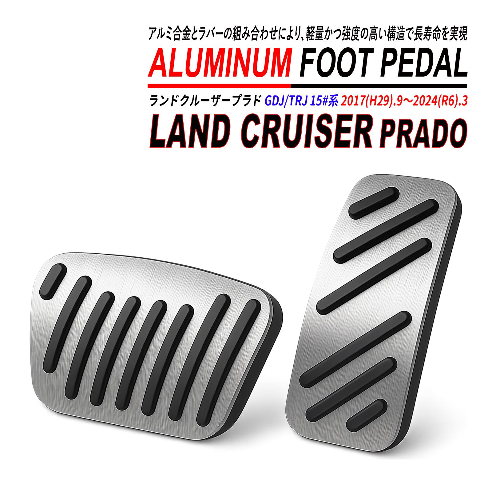 ランドクルーザー プラド 150 アルミ ペダルカバー 滑り止め付 AT車 ブレーキ アクセル シルバー ブラック 純正交換 ドレスアップ