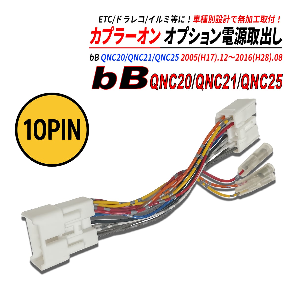 bB QNC20 / QNC21 / QNC25 電源取り出しカプラー オーディオ分岐 ナビ裏 カプラーオン ETC ドラレコ 常時電源 ACC電源 イルミネーション電源