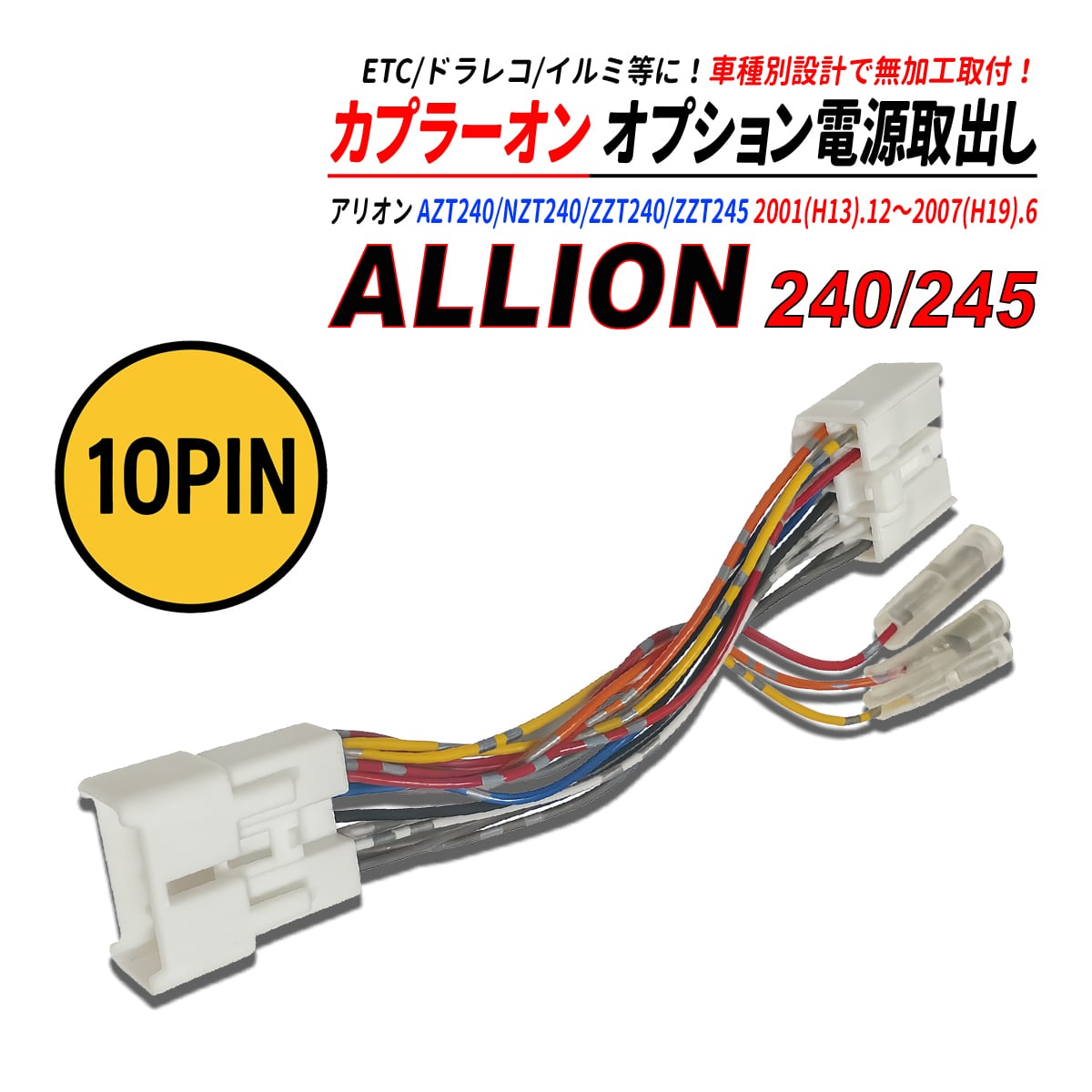 アリオン AZT240 / NZT240 / ZZT240 / ZZT245 電源取り出しカプラー オーディオ分岐 ナビ裏 カプラーオン ETC ドラレコ 常時電源 ACC電源 イルミネーション電源