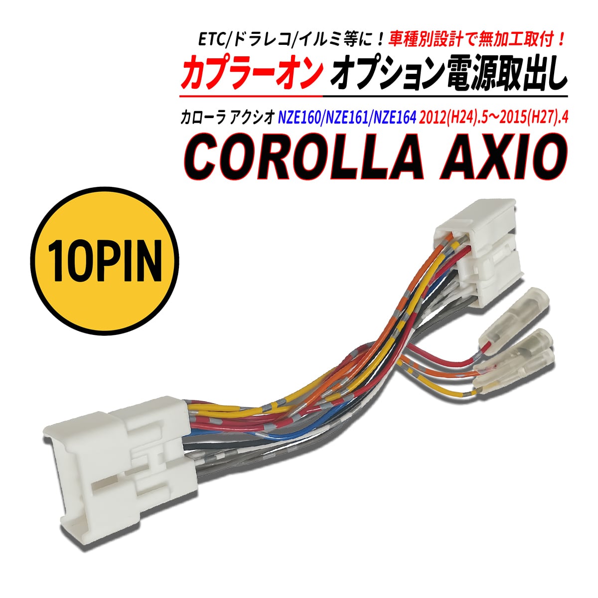 カローラ アクシオ 160系 電源取り出しカプラー オーディオ分岐 ナビ裏 カプラーオン ETC ドラレコ 常時電源 ACC電源 イルミネーション電源