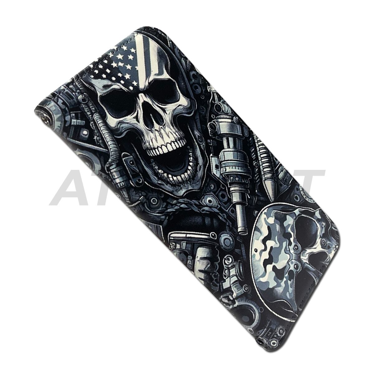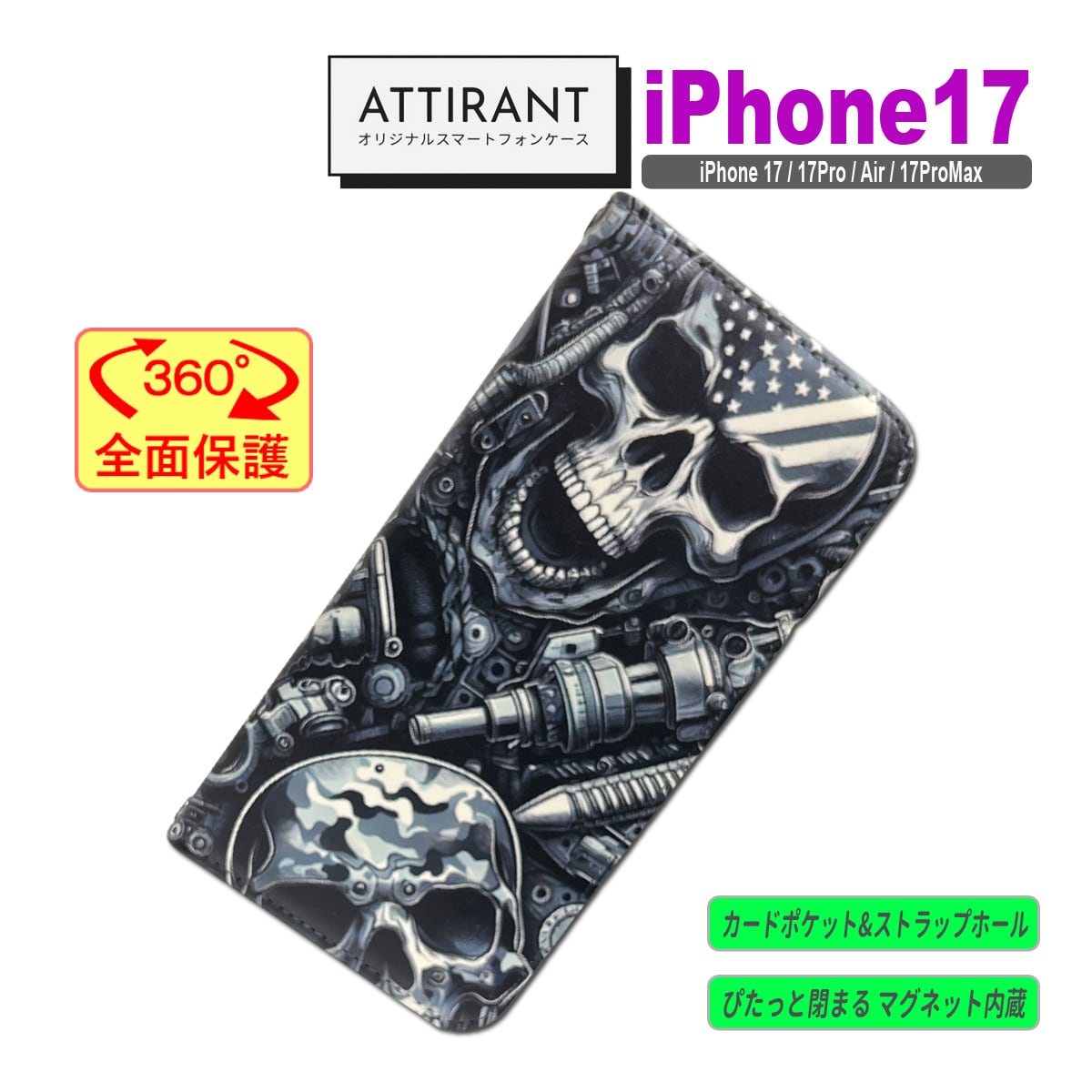 iPhone 17 ケース 手帳型 カバー 17 17 Pro Air ProMax 髑髏 スカル ドクロ グレー アイフォンケース