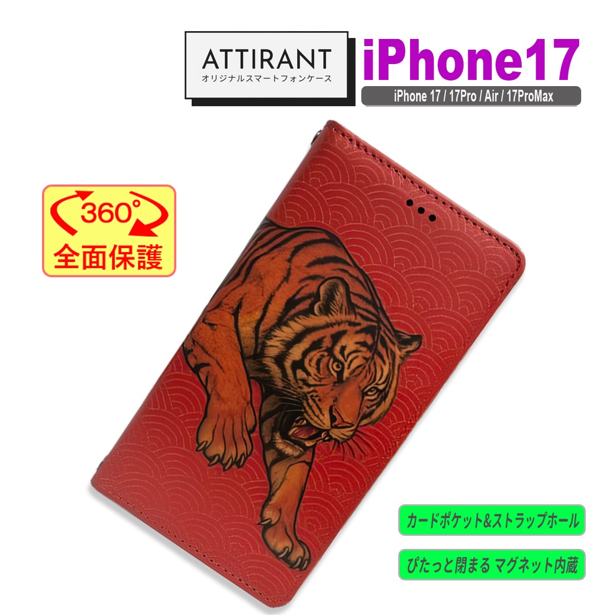 iPhone 17 ケース 手帳型 カバー 17 17 Pro Air ProMax 和柄 虎 トラ タイガー アイフォンケース