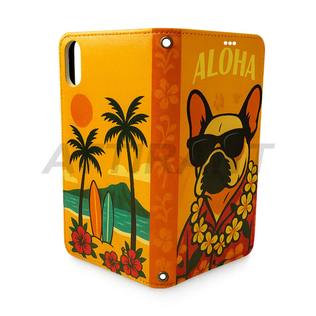 iPhone 12 ケース 手帳型 カバー 12 Pro mini ProMax ハワイ ブルドッ ク 犬 サングラス かわいい オシ ャレ アイフォンケース
