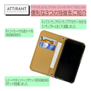 触り心地の良いPVCレザーの手帳型カバーには、便利なカードポケット+マルチ収納ポケット付きです。