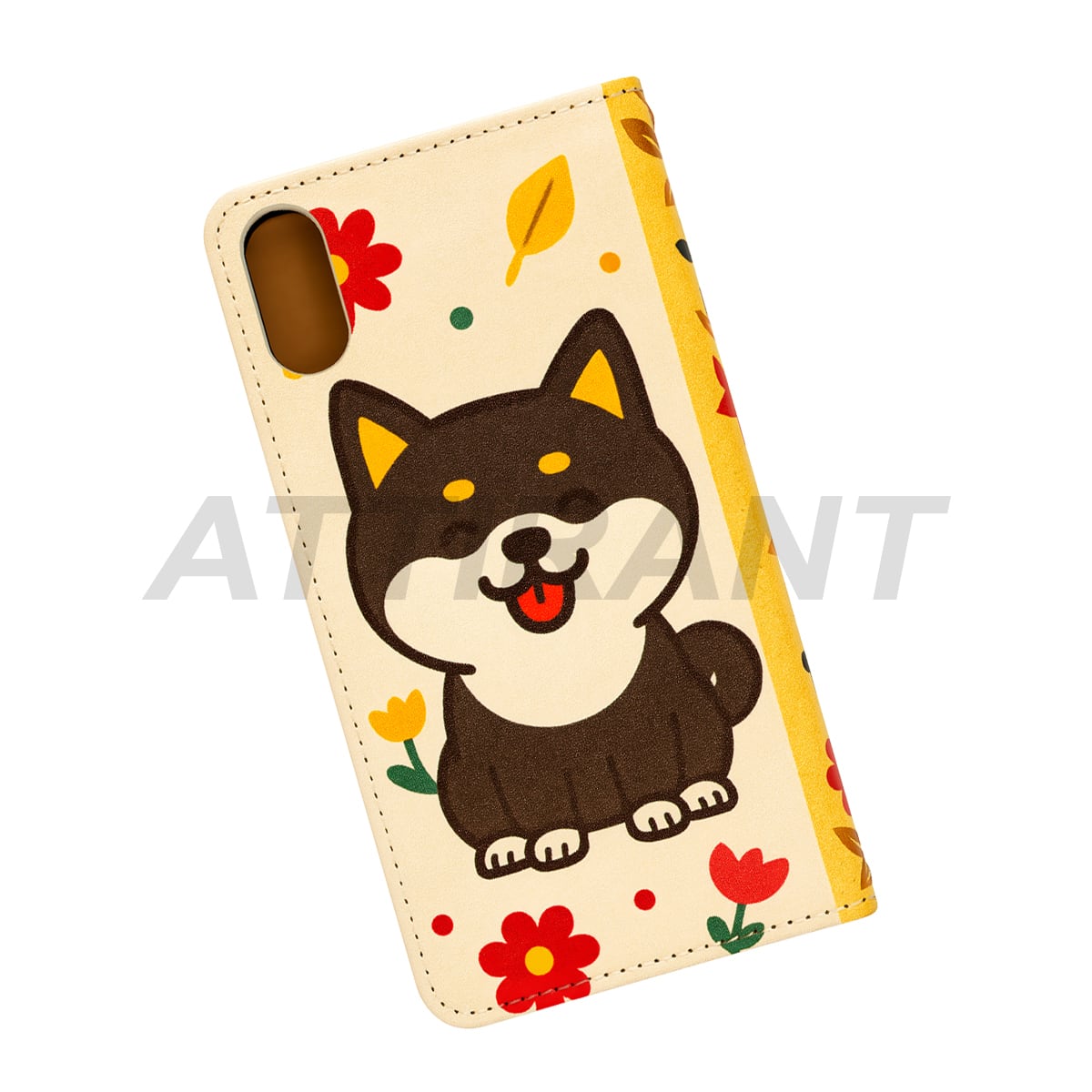 iPhone 13 ケース 手帳型 カバー 13 Pro mini ProMax 和風 黒豆柴 犬 かわいい オシャレ アイフォンケース