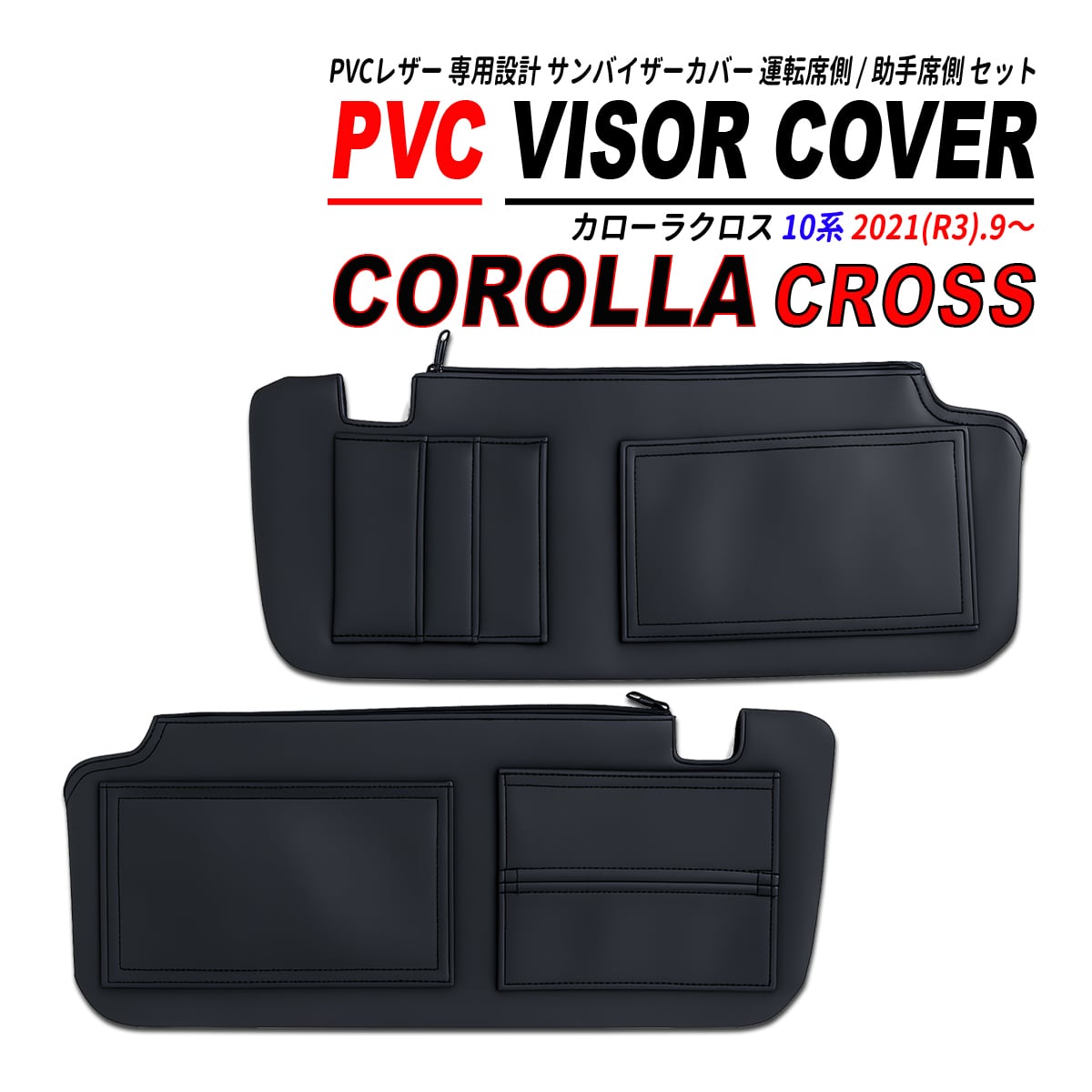 カローラクロス 10系 サンバイザーカバー PVCレザー 車種専用 運転席 助手席セット 収納ポケット付 バイザーカバー カスタムパーツ
