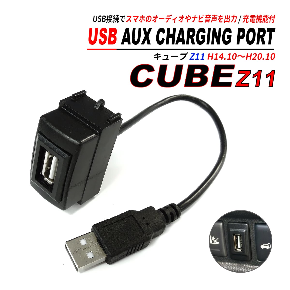 キューブ Z11 USBポート 増設キット サービスホール埋込 USBオーディオ対応 スマホ充電 CarPlay ATTIRANT