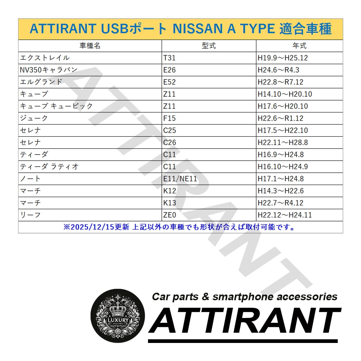 エルグランド E52 USBポート 増設キット サービスホール埋込 USBオーディオ対応 スマホ充電 CarPlay ATTIRANT