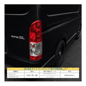 ハイエース 200 4型 純正タイプ テールランプ 左右セット 1型 2型 3型 4型 5型 6型 7型 8型 取付可能 DX S-GL バン ワンゴン