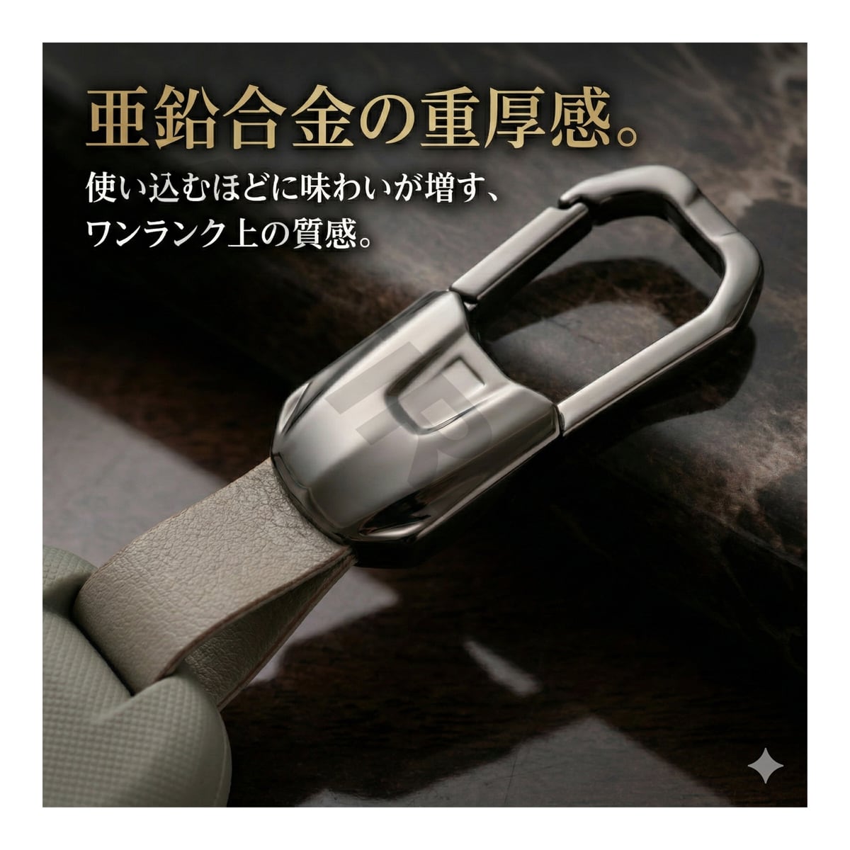 ホルダー部分には、重厚感のある亜鉛合金を使用。金属特有の輝きと確かな重量感が、手元をラグジュアリーに演出します。