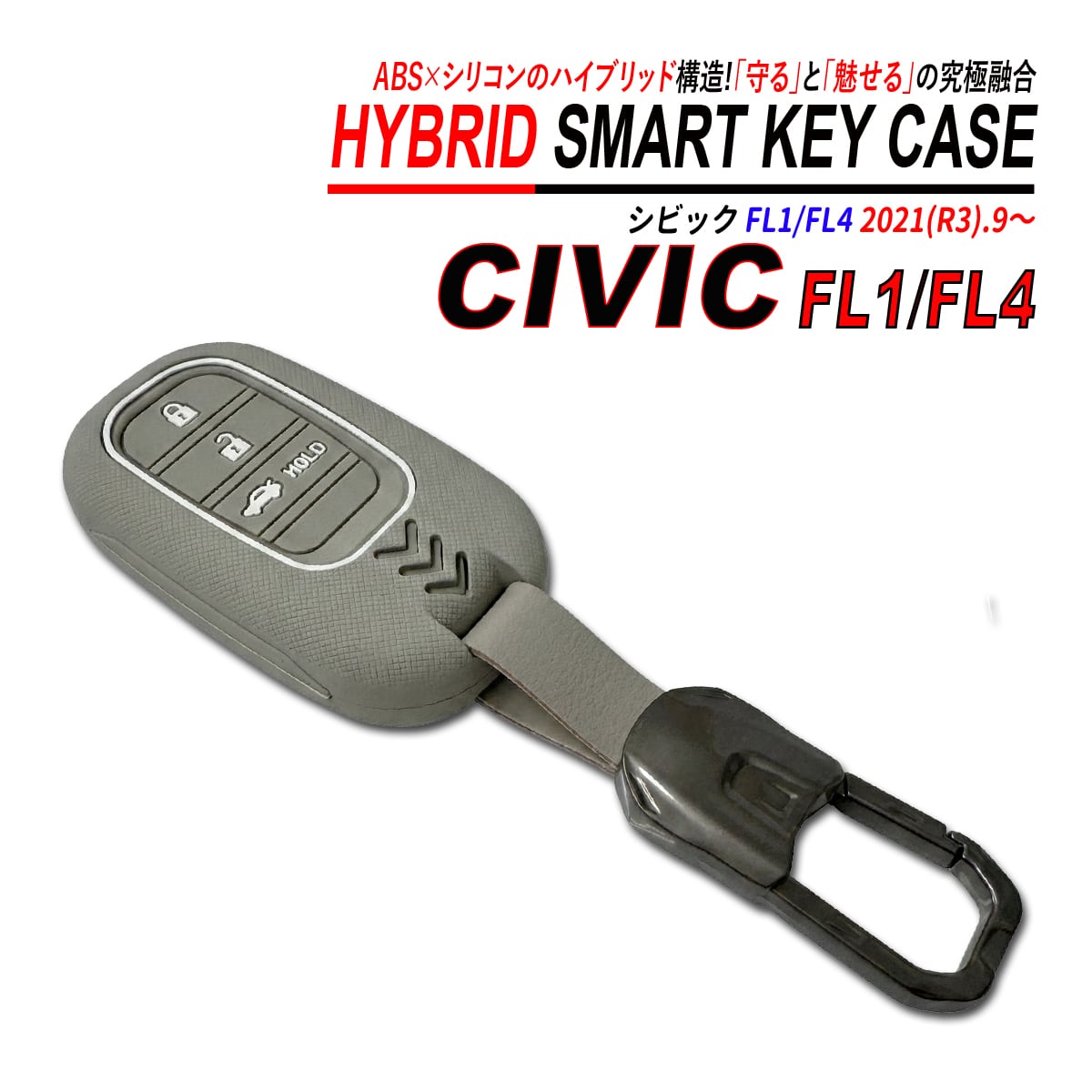シビック FL1 FL4 スマートキーケース シリコン ABS ハイブリッド構造 亜鉛合金 キーホルダー キーケース ホンダ 3ボタン