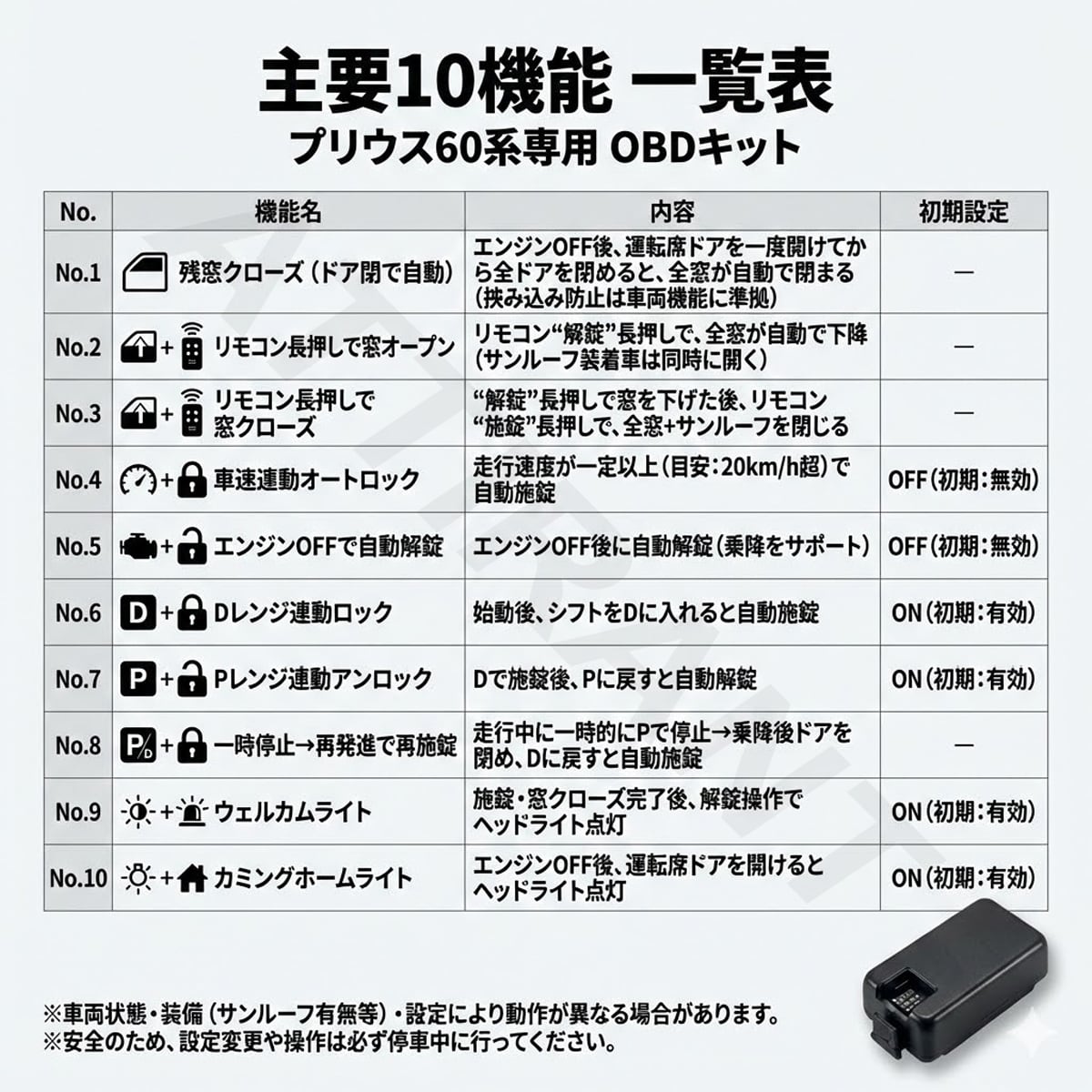 プリウス 60 専用 OBD2 マルチユニット 10機能搭載 車速連動 オートロック ウィンドウクローズ カスタム パーツ アクセサリー ATTIRANT ZVW60 ZVW65