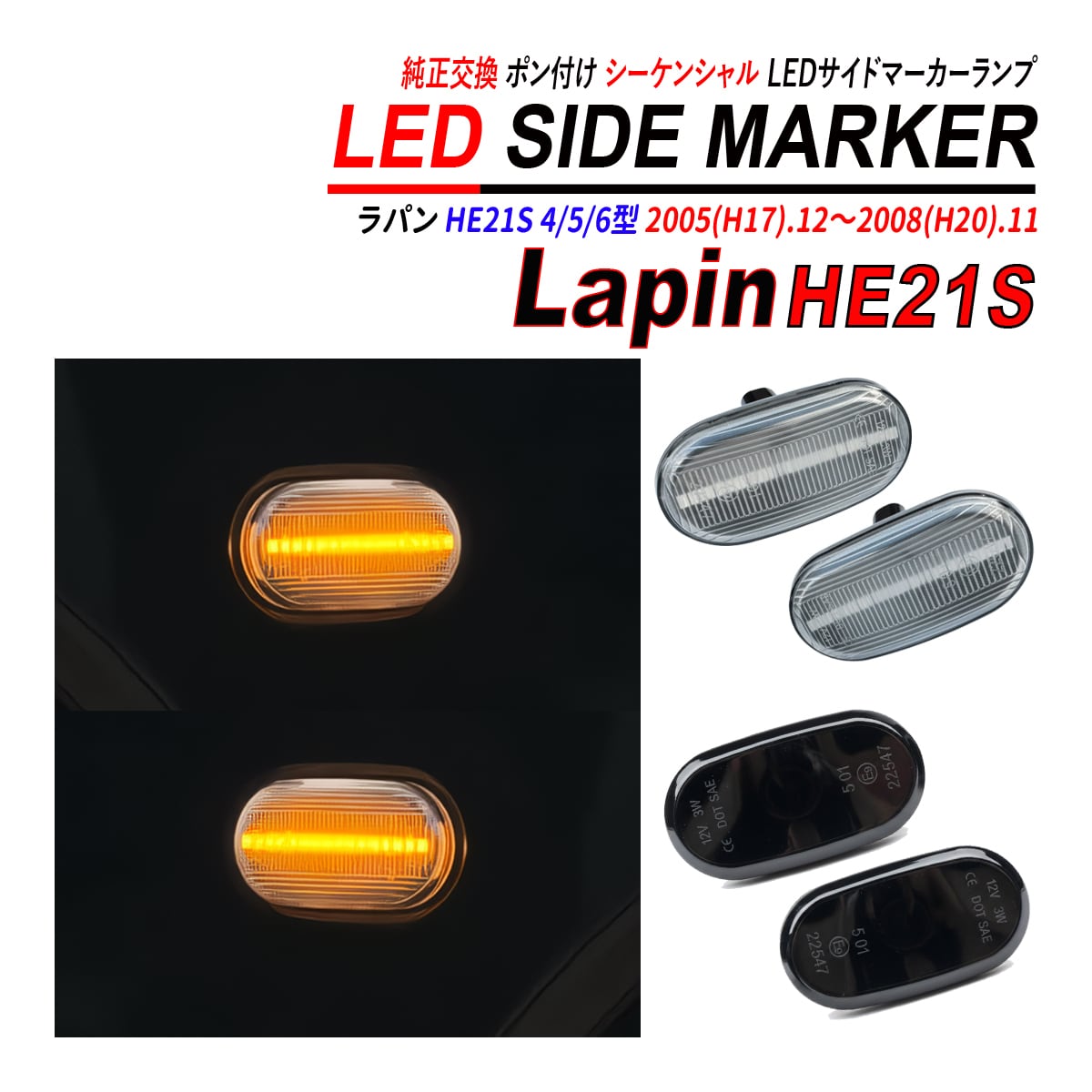 ラパン HE21S LED サイドマーカー シーケンシャル ウィンカー カスタムパーツ