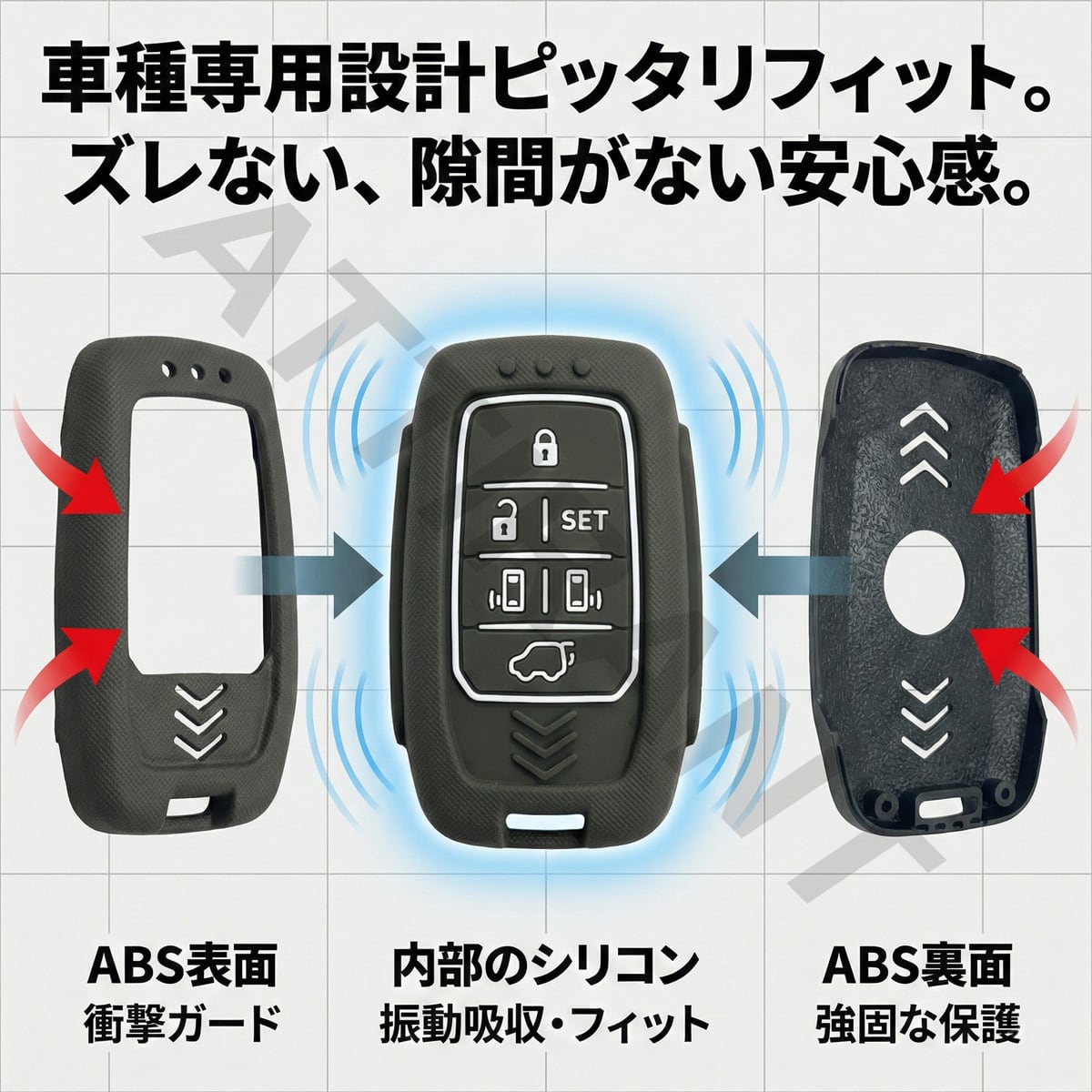 アルファード40 / ヴェルファイア40 スマートキーケース カーキ グリーン シリコン ABS ハイブリッド構造 トヨタ 5ボタン