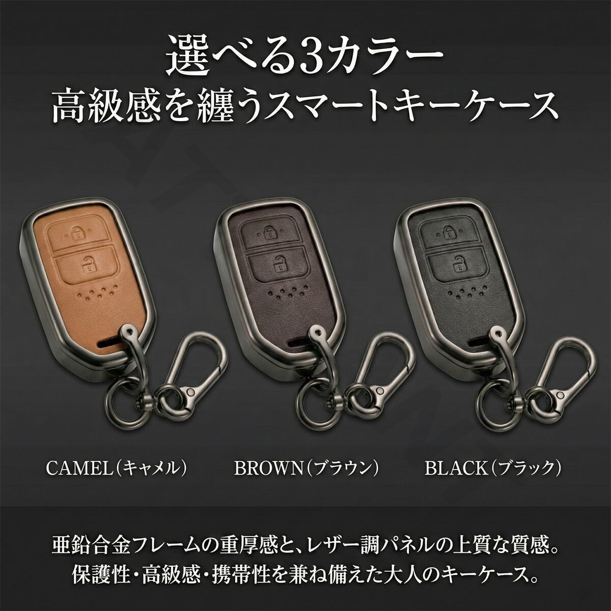 スマートキー スマートキーケース キーケース 亜鉛合金 カラビナ キーリング レザー調 高級感 保護カバー ドレスアップ 純正キー 自動車用品 カーパーツ