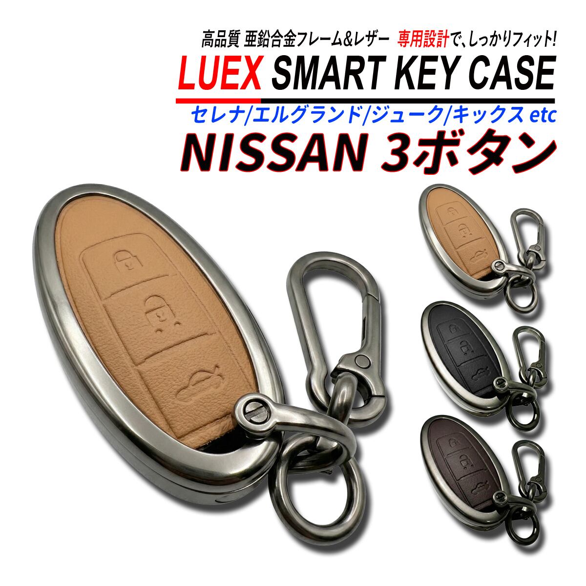 スマートキーケース キーケース 亜鉛合金 PVC レザー 高品質 日産 3ボタン エクストレイル エルグランド セレナ NV350