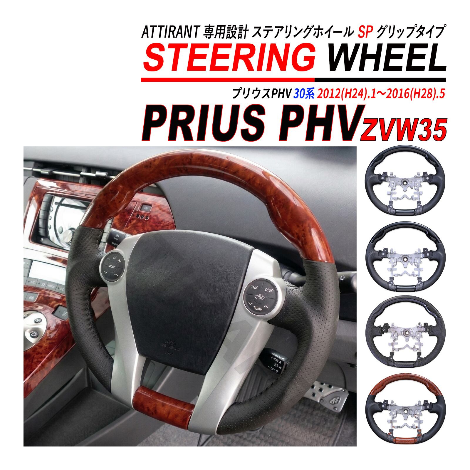 プリウス PHV ZVW35 ステアリングホイール ハンドル パンチングレザー ピアノブラック カーボン調 茶木目 黒木目