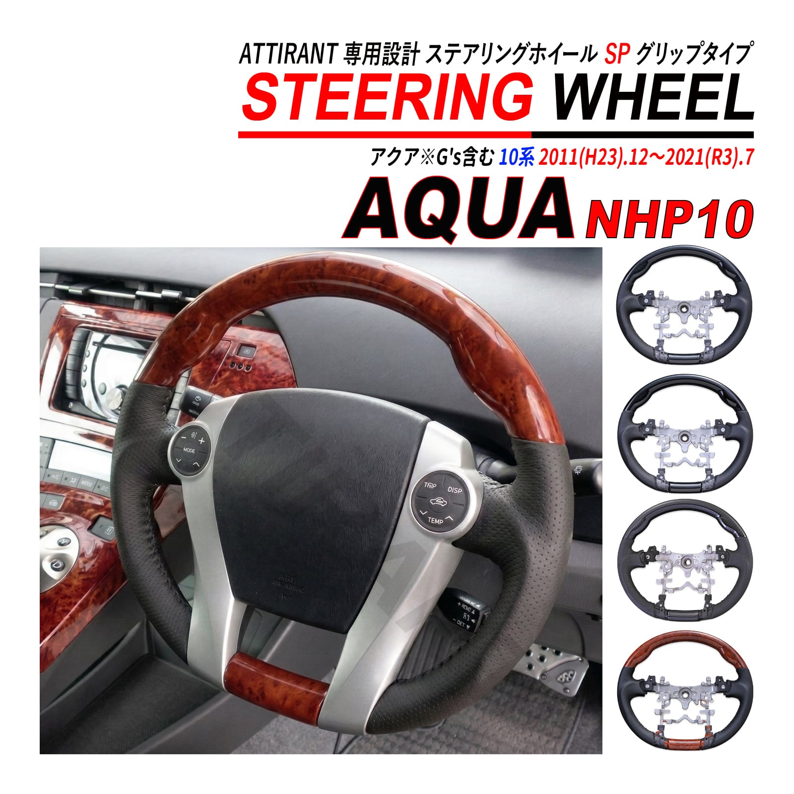 アクア NHP10 NHP10H ステアリングホイール ハンドル パンチングレザー ピアノブラック カーボン調 茶木目 黒木目