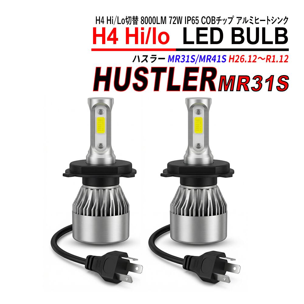 ハスラー MR31S MR41S H4 LED ヘッドライト バルブ Hi/Lo切替 6000K 左右合計16000LM 72W IP65 COBチップ アルミヒートシンク 2本セット