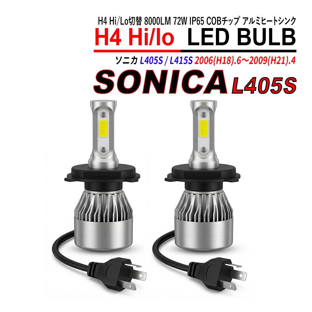 ソニカ L405S L415S H4 LED ヘッドライト バルブ Hi/Lo切替 6000K 左右合計16000LM 72W IP65 COBチップ アルミヒートシンク 2本セット