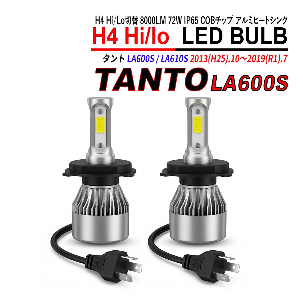 タント LA600S LA610S H4 LED ヘッドライト バルブ Hi/Lo切替 6000K 左右合計16000LM 72W IP65 COBチップ アルミヒートシンク 2本セット