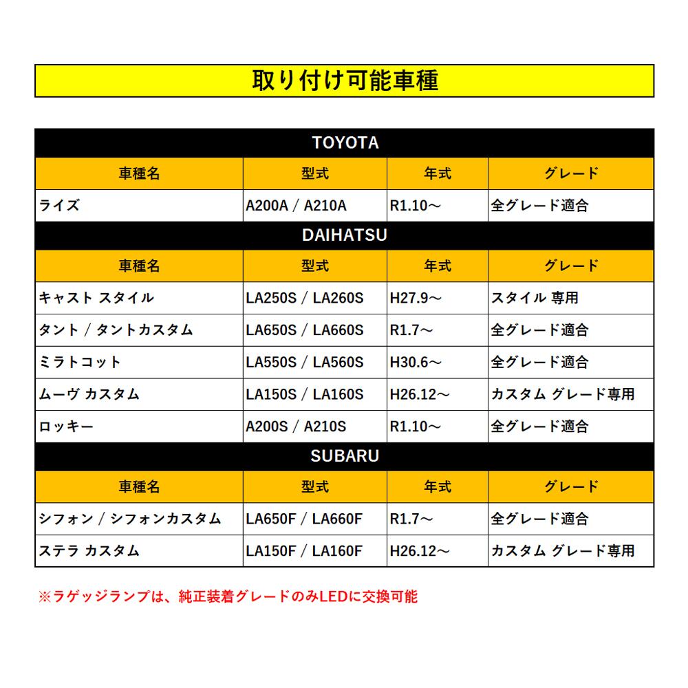 ※ラゲッジランプは、純正装着グレードのみLEDに交換可能