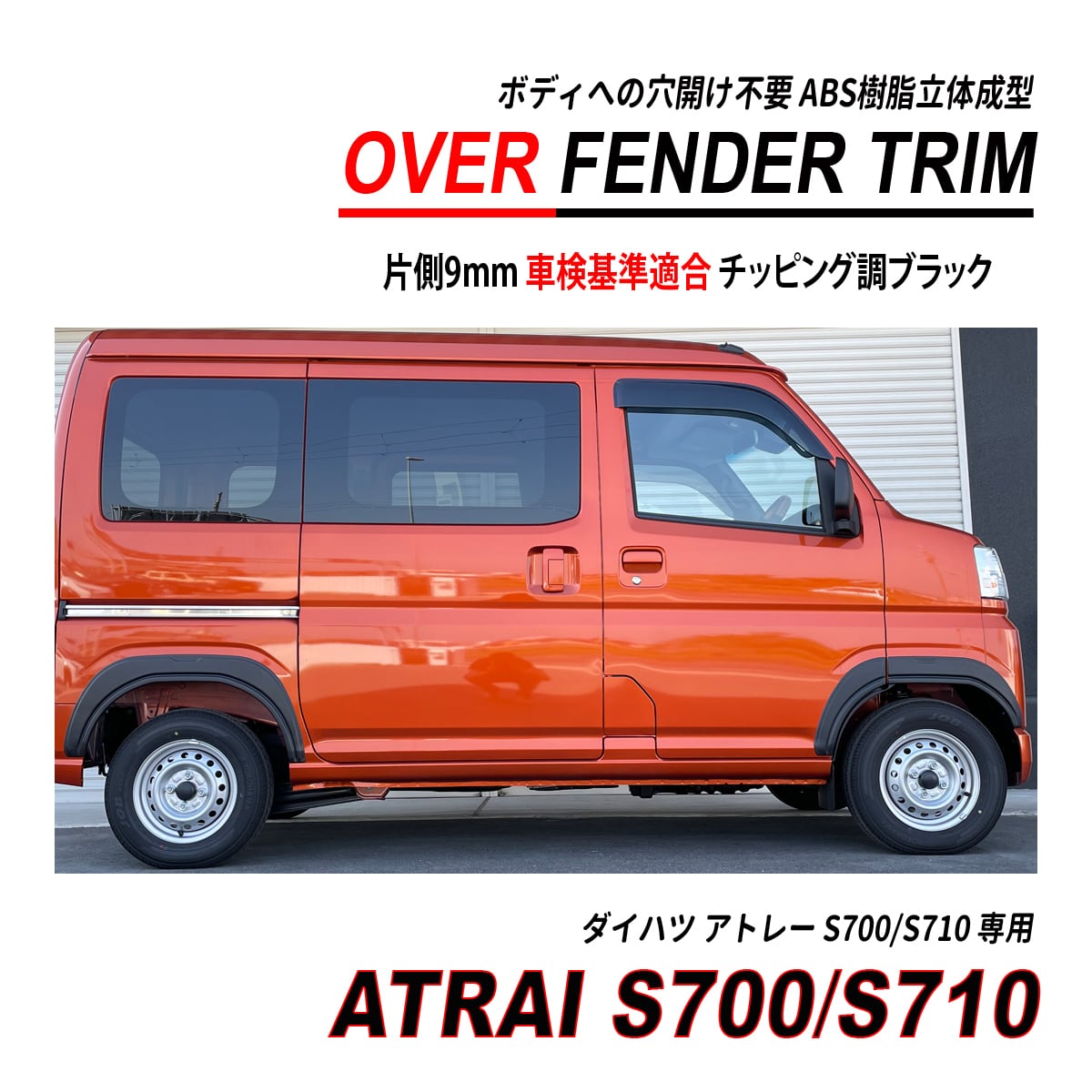 アトレー S700 / S710 オーバーフェンダー トリム 穴開け不要 車検対応 ABS立体成型 ブラック 軽バン