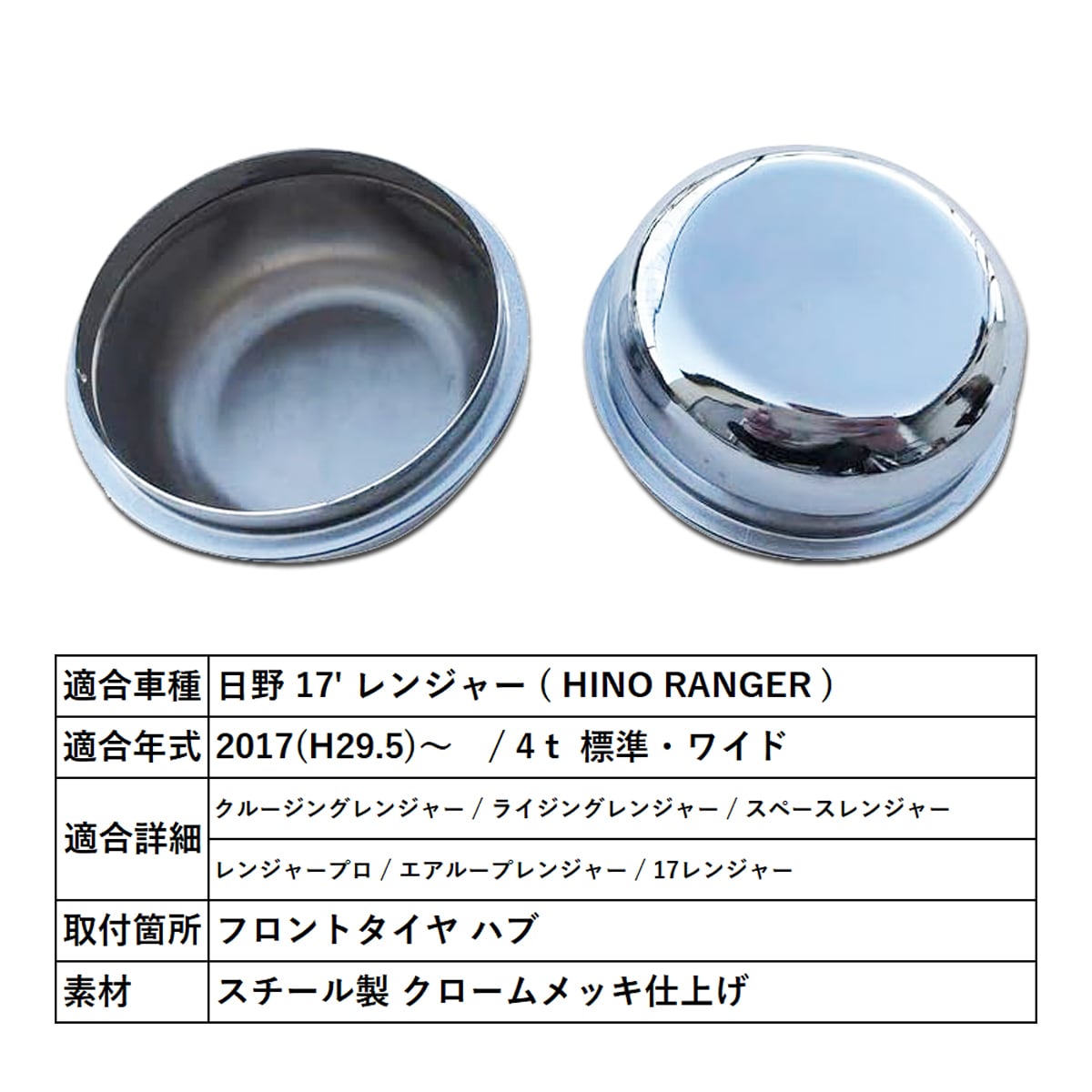 日野 17 レンジャー 4t フロントハブキャップ クロームメッキ スチール製 左右セット