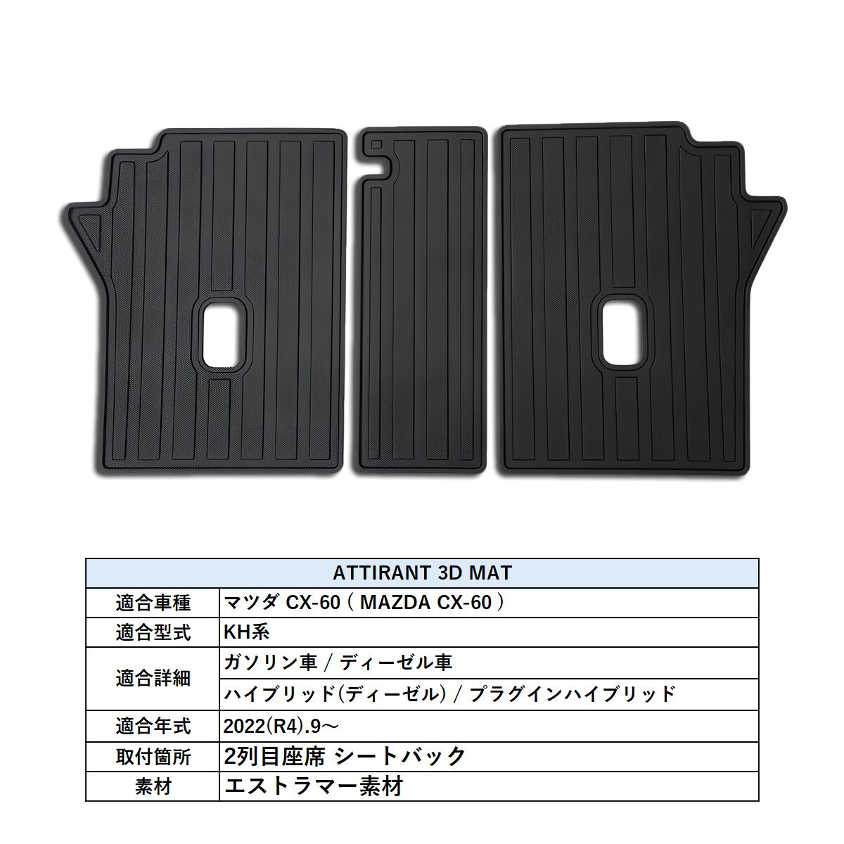 CX-60 KH系 3D フロアマット 2列目 シートバック 防水 防砂 防汚 水洗いOK TPE エストラマー素材
