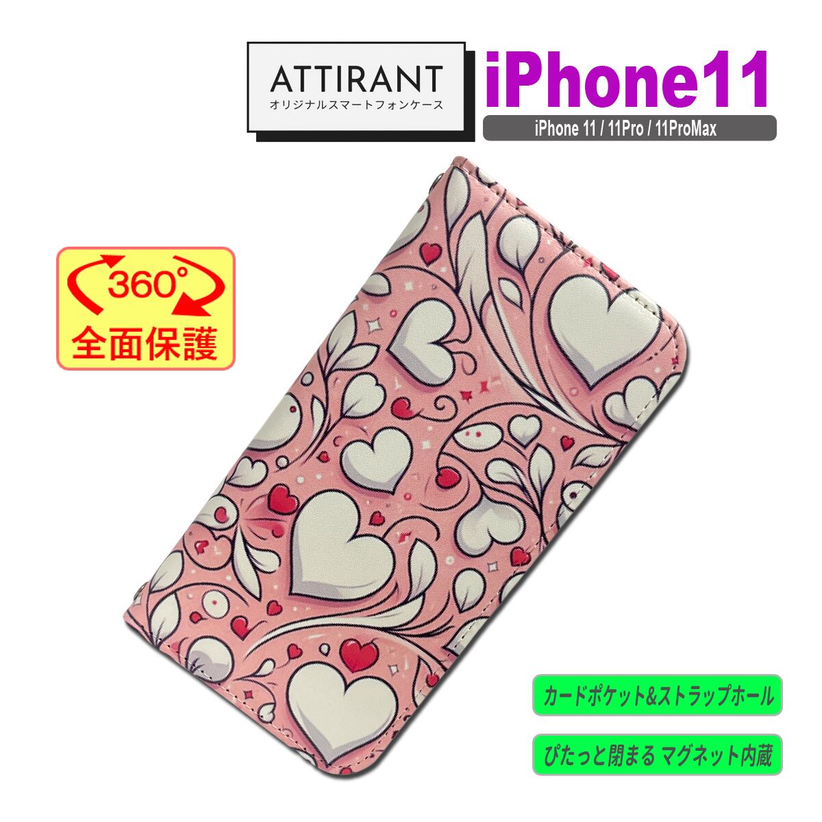 iPhone 11 ケース 手帳型 カバー 11 Pro ProMax ハート ピンク かわいい アイフォンケース