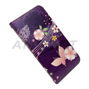 iPhone SE ケース 手帳型 カバー SE2 / SE3 和柄 蝶々 紫 パープル アイフォンケース