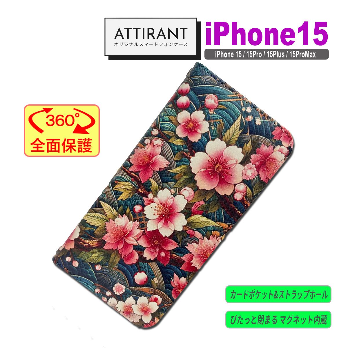 iPhone 15 ケース 手帳型 カバー 15 15 Pro Plus ProMax 和柄 桜 サクラ アート アイフォンケース