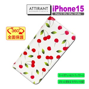 iPhone 15 ケース 手帳型 カバー 15 15 Pro Plus ProMax さくらんぼ チェリー かわいい アイフォンケース