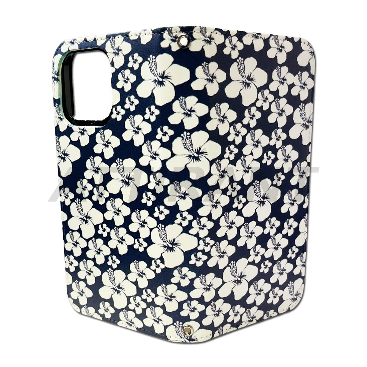 iPhone X ケース 手帳型 カバー X XS XR XSMAX ハイビスカス ネイビー ホワイト かわいい オシャレ アイフォンケース