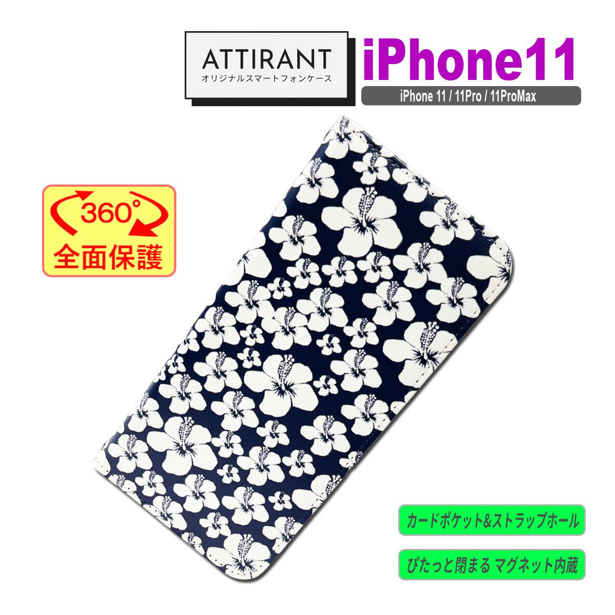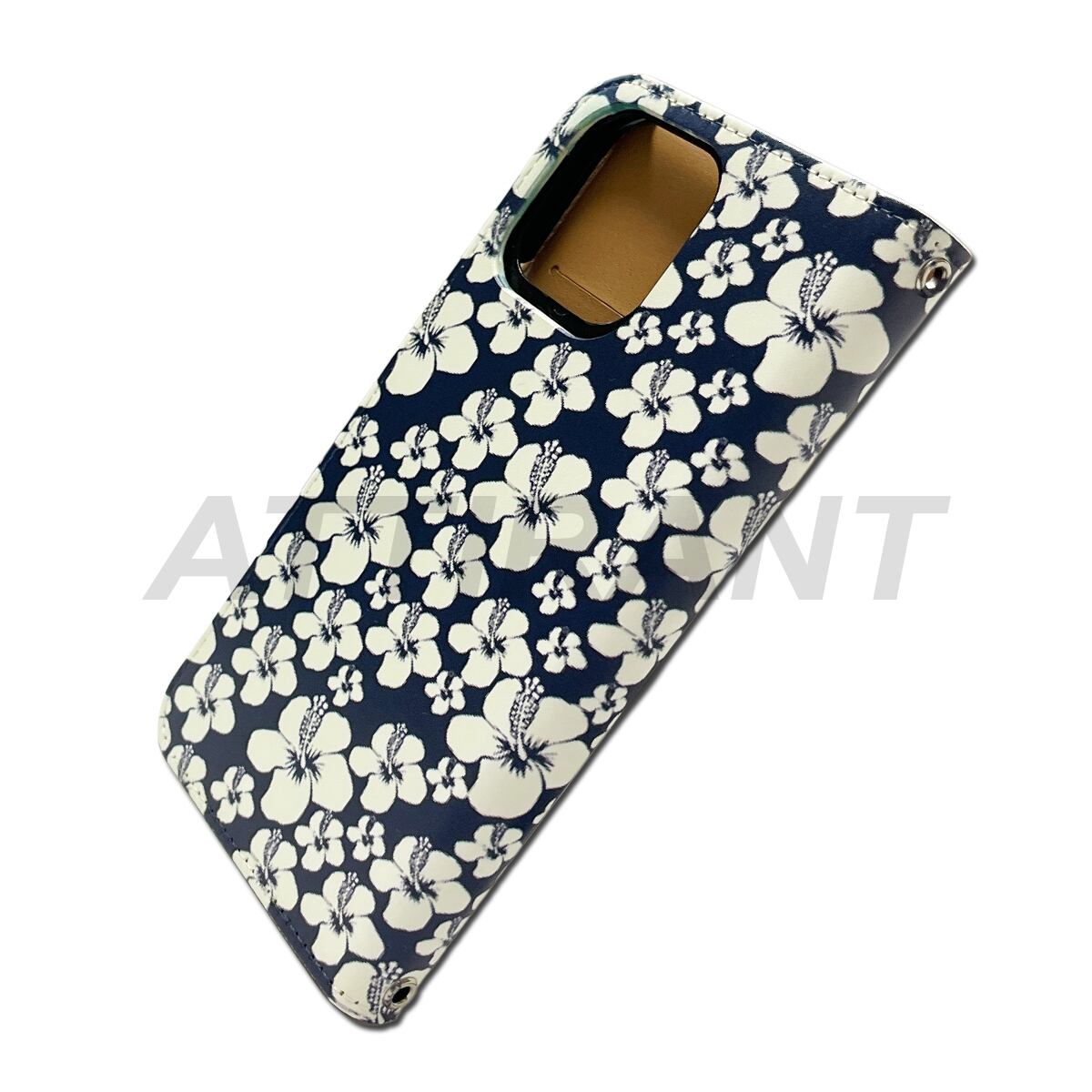 iPhone 11 ケース 手帳型 カバー 11 Pro ProMax ハイビスカス ネイビー ホワイト かわいい オシャレ アイフォンケース