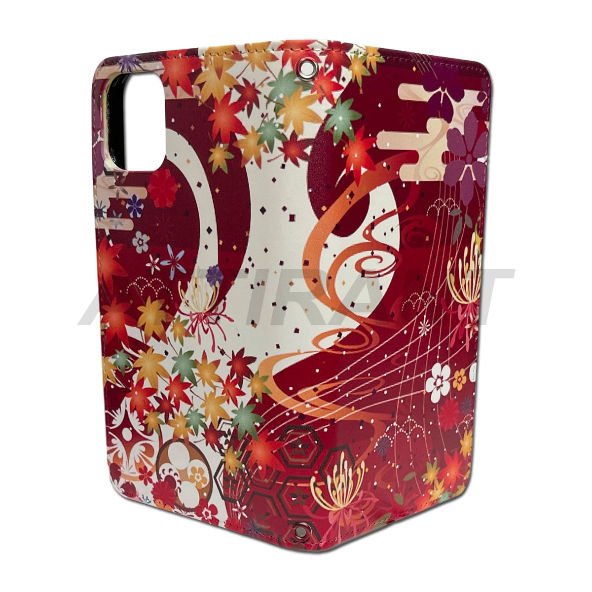 iPhone 12 ケース 手帳型 カバー 12 Pro mini ProMax 和柄 楓 紅葉 かわいい オシャレ アイフォンケース