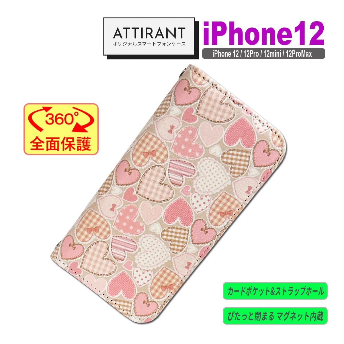 iPhone 12 ケース 手帳型 カバー 12 Pro mini ProMax ハート ピンク かわいい オシャレ アイフォンケース