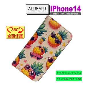iPhone 14 ケース 手帳型 カバー 14 Pro Plus ProMax パイン パイナップル かわいい オシャレ アイフォンケース