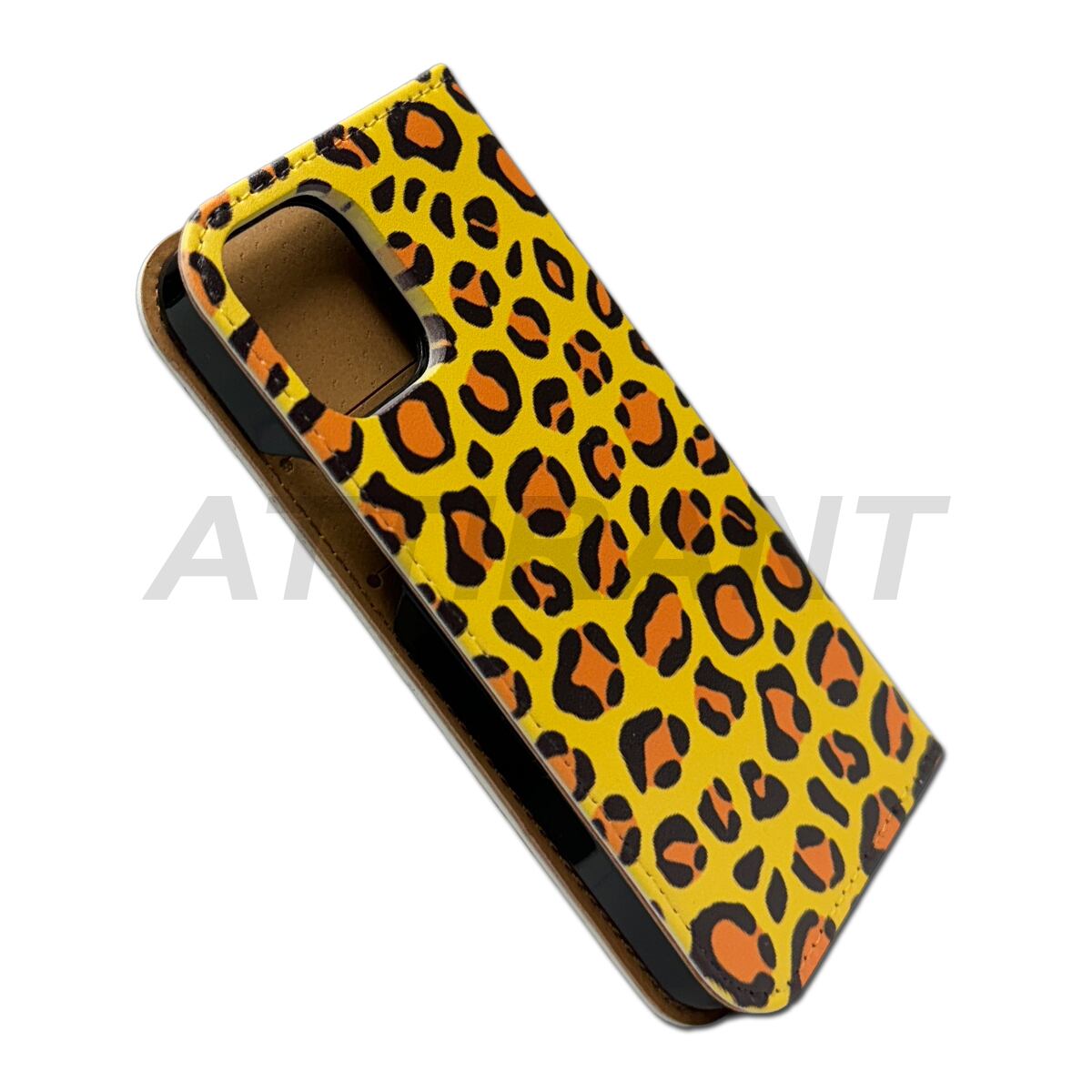 iPhone SE ケース 手帳型 カバー SE2 / SE3 ヒョウ柄 イエロー かわいい オシャレ アイフォンケース