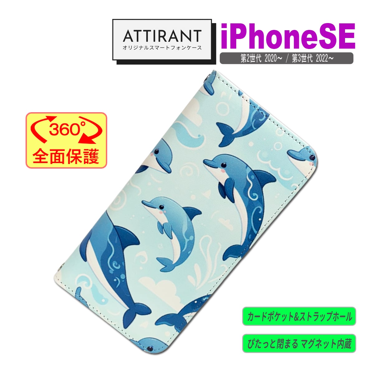 iPhone SE ケース 手帳型 カバー SE2 / SE3 イルカ 海 マリン かわいい オシャレ アイフォンケース