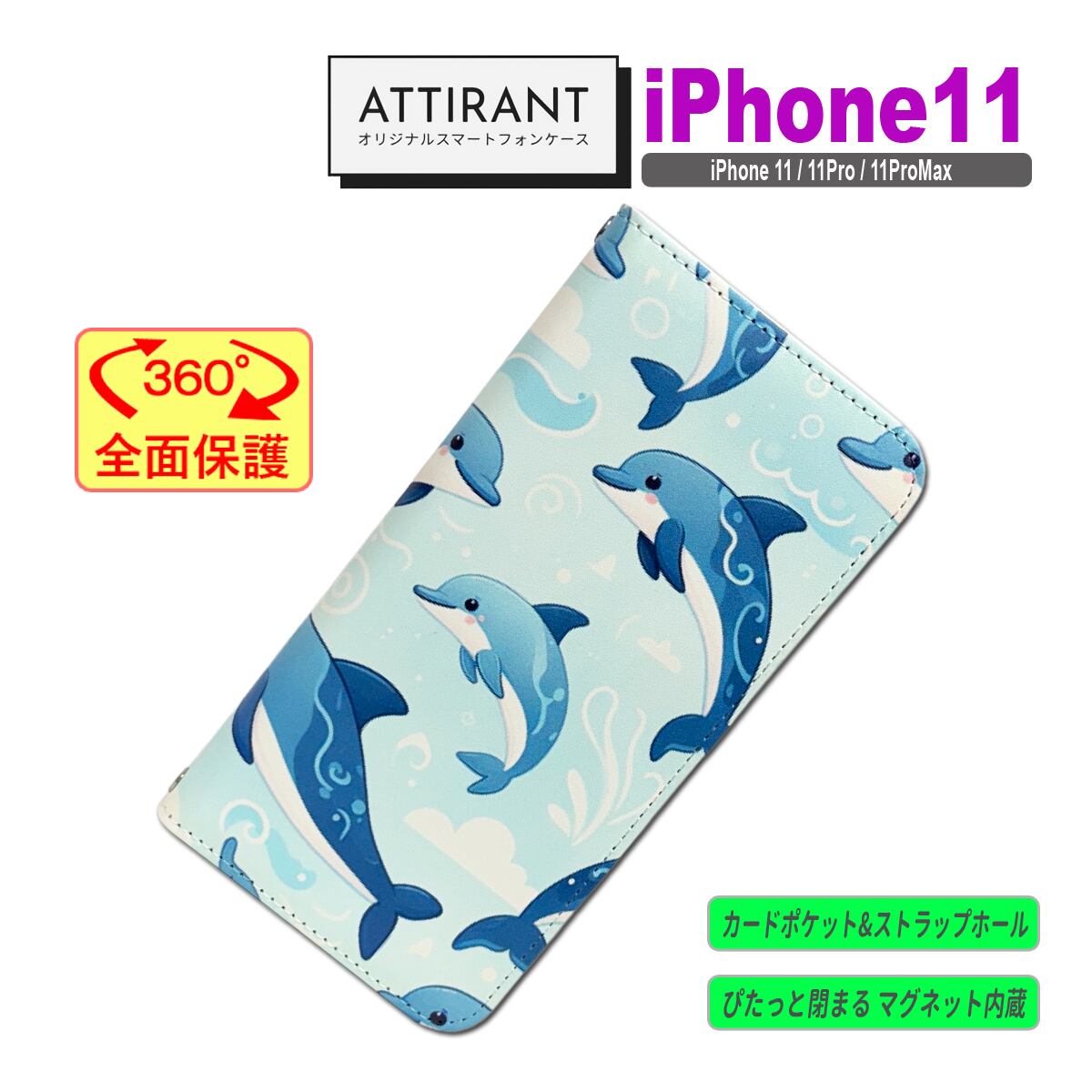 iPhone 11 ケース 手帳型 カバー 11 Pro ProMax イルカ 海 マリン かわいい オシャレ アイフォンケース