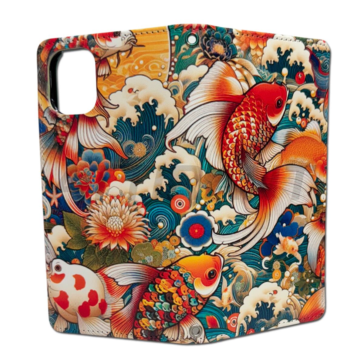 iPhone 15 ケース 手帳型 カバー 15 15 Pro Plus ProMax 和柄 金魚 キンギョ かわいい オシャレ アイフォンケース
