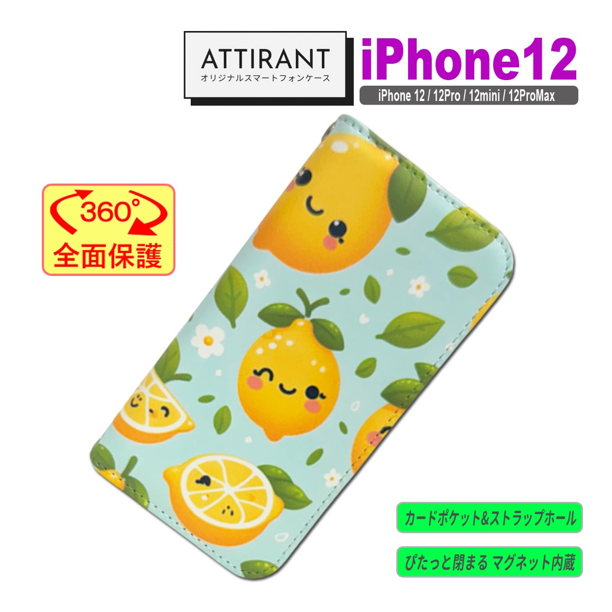 iPhone 12 ケース 手帳型 カバー 12 Pro mini ProMax レモン 檸檬 かわいい アイフォンケース