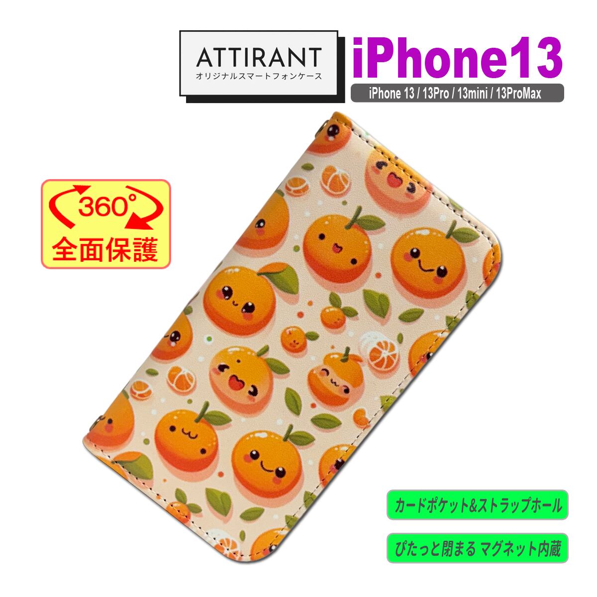 iPhone 13 ケース 手帳型 カバー 13 Pro mini ProMax みかん 蜜柑 オレンジ かわいい アイフォンケース