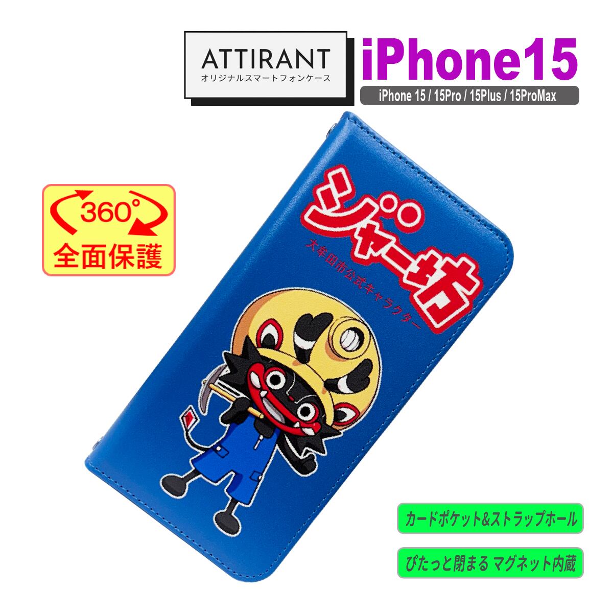 iPhone 15 ケース 手帳型 カバー 15 15 Pro Plus ProMax ジャー坊 福岡県 大牟田市 公式キャラクター アイフォンケース