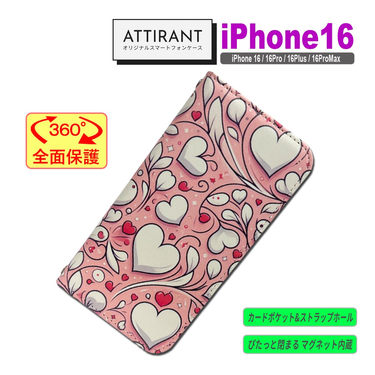 iPhone 16 ケース 手帳型 カバー 16 16 Pro Plus ProMax 16e ハート ピンク かわいい アイフォンケース