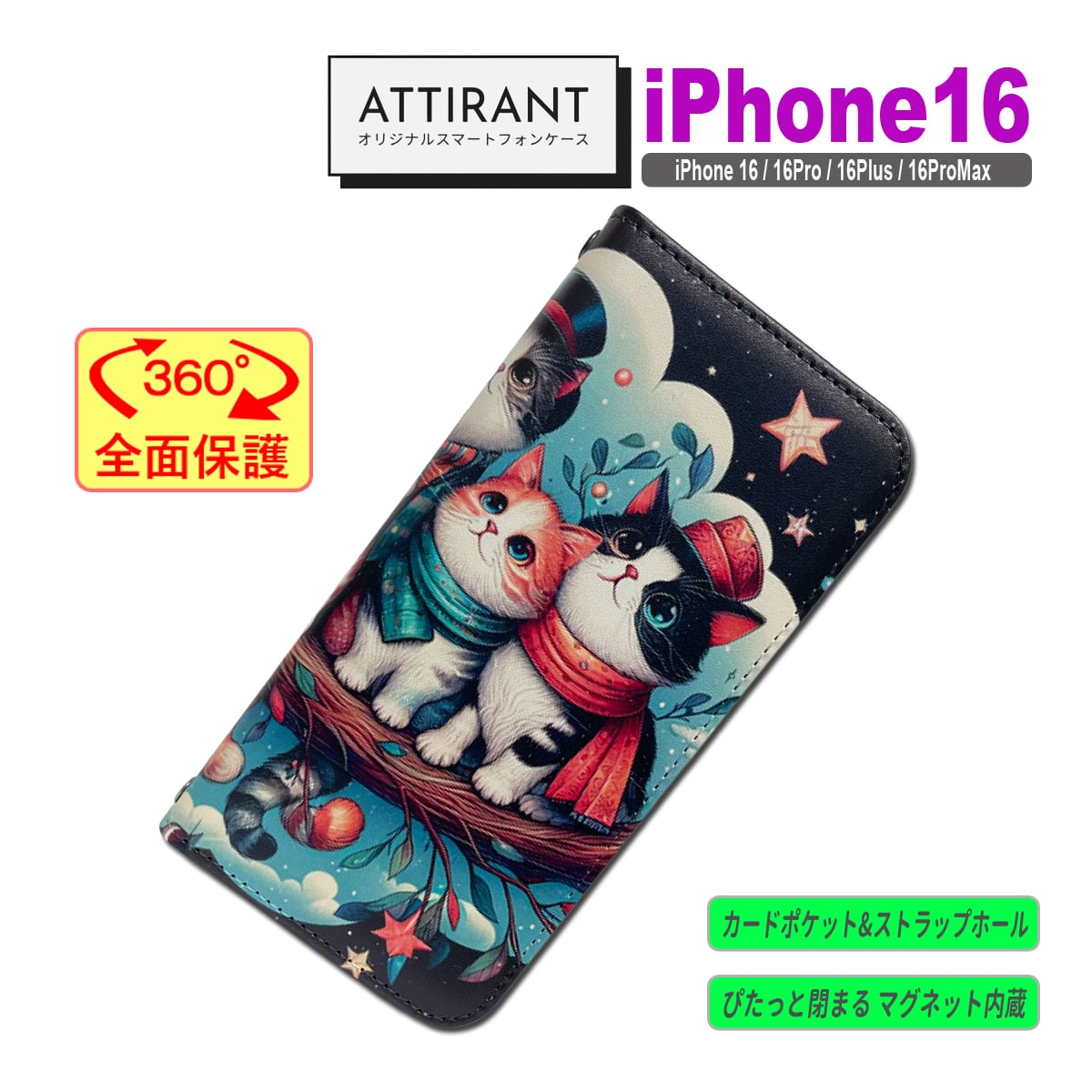 iPhone 16 ケース 手帳型 カバー 16 16 Pro Plus ProMax 16e 猫 ねこ かわいい キャット アイフォンケース
